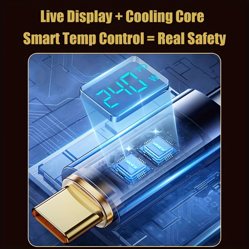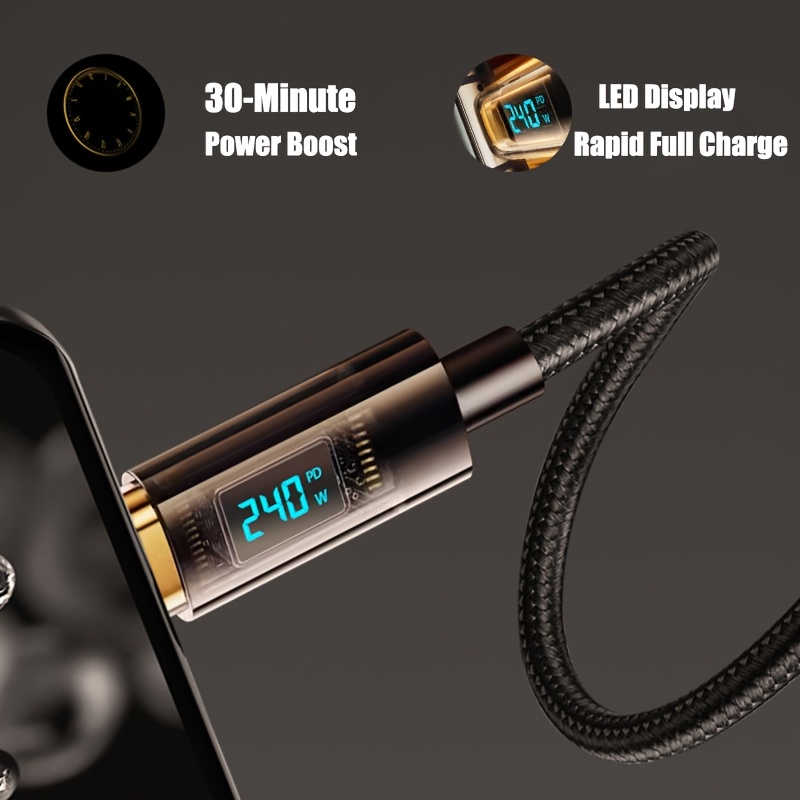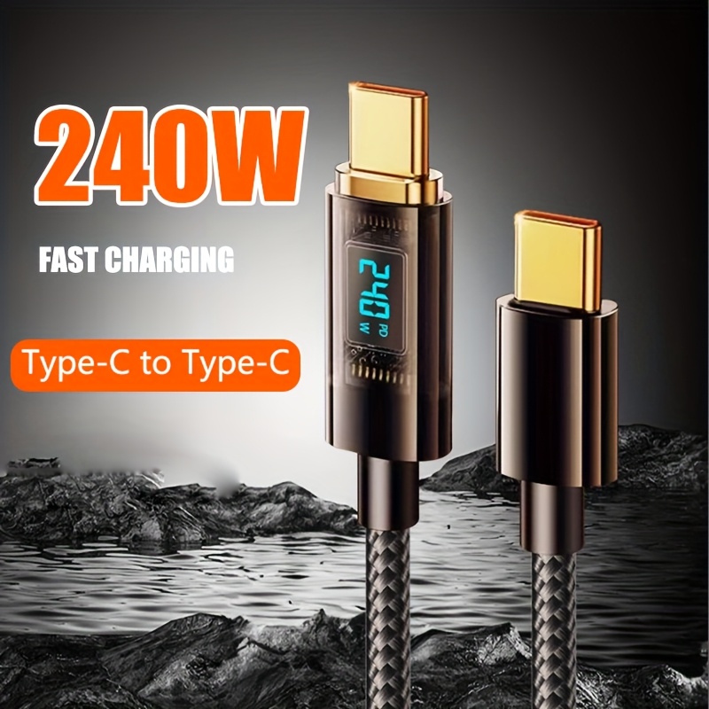 QYSGute 240W Max Fast Charging, Digital Display 480Mbps Data Transfer, 8K Video Support, Durable Braided Cord USB-C to USB-C Charging Cable, Compatible with 120W/100W, Male to Male Type-C Cable for IPhone16/15, MacBook/iPad/Xiaomi And Other Devices